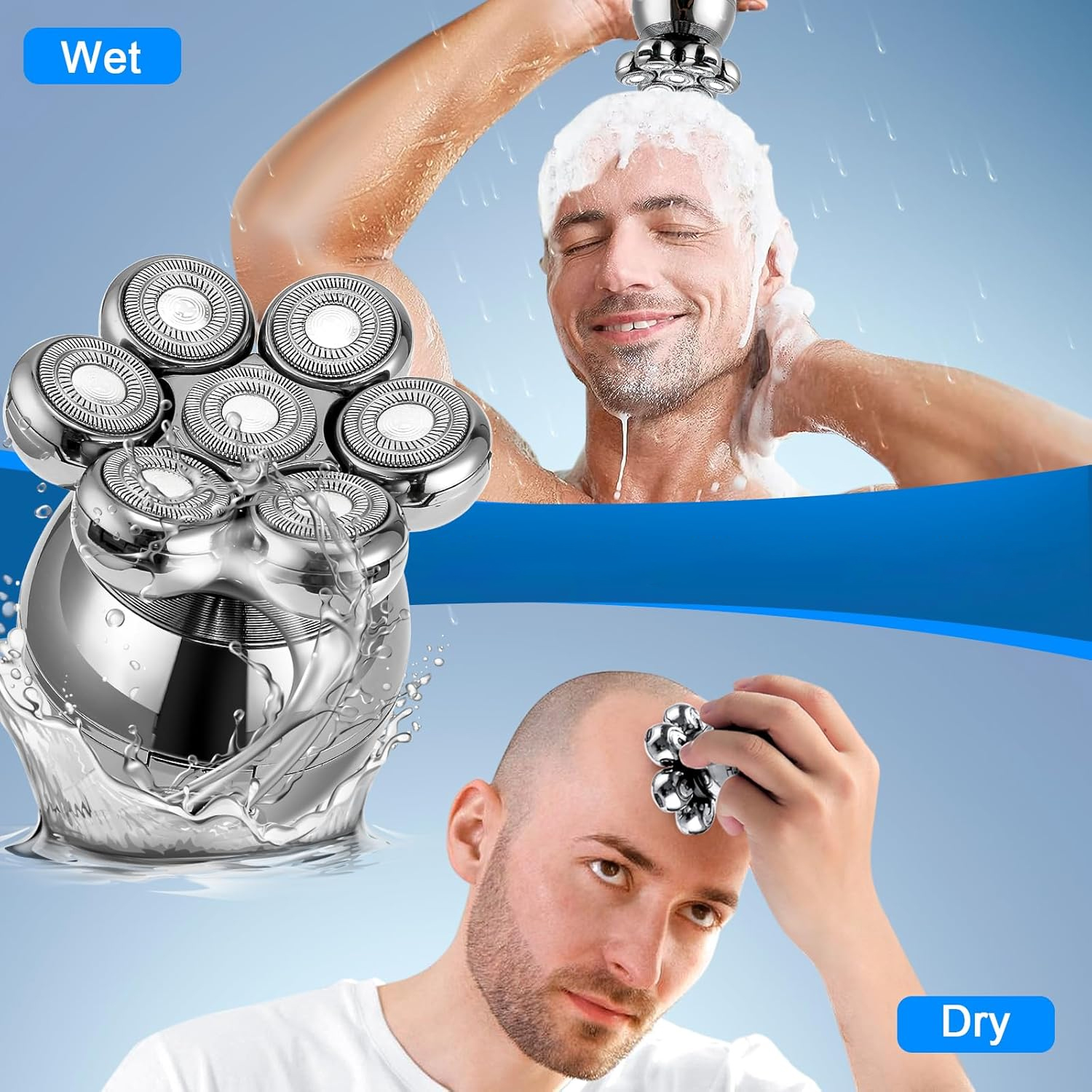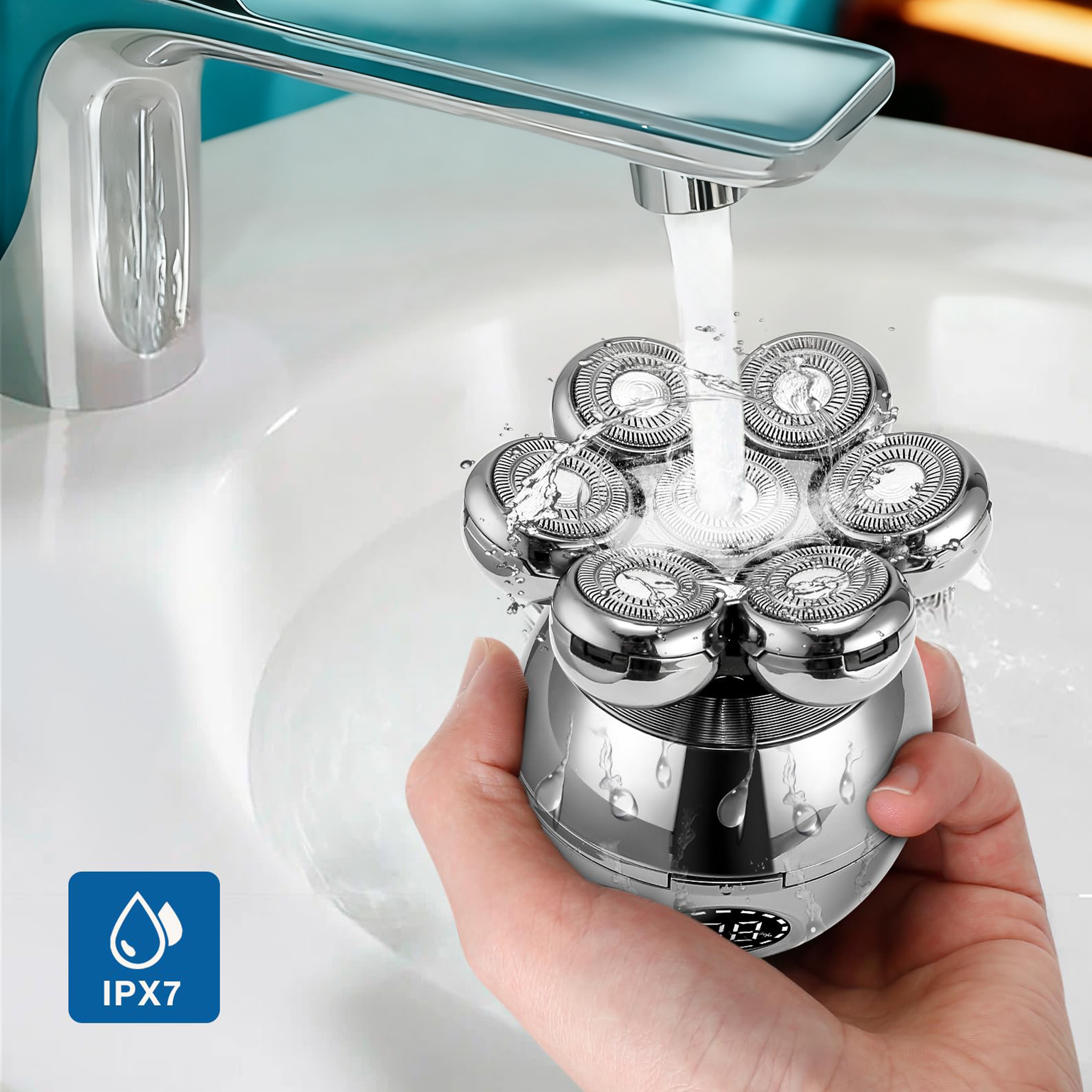 - 7 Testine Flottanti a 360° – Si adattano a ogni contorno per una rasatura accurata, senza angoli morti.